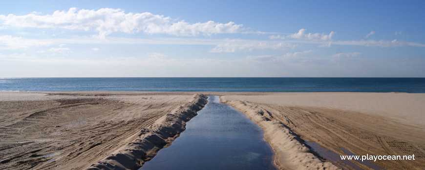 A delimitar a zona de banhos a poente, encontra-se uma formação rochosa conhecida por Ponta da Rana. Na zona central, passa um pequeno curso de água.